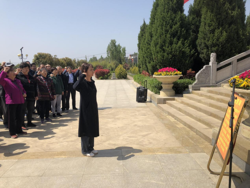 “为了铭记红二十五军鏖战独树镇的丰功伟绩,1997年,方城县委、县政府在七里岗遗址址,建立红二十五军独树镇战斗纪念碑......”在讲解员的引导下,大家来到纪念碑碑前,神情凝重、静默肃立、鞠躬致意。处党委书记王沛悦带领全体党员重温入党誓词。