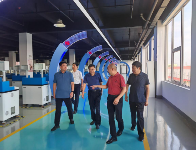 在赵玉涛等人陪同下,安士伟一行参观了河南畅达半导体有限公司的高标准现代化办公及生产车间。河南畅达半导体有限公司是一家集先进激光应用及半导体自动化智能化装备研发、智造、销售及售后服务于一体的高科技平台型企业,是我校与南阳市宛城区人民政府共建南阳理工学院校友回乡创新创业产业园的首个校友企业。