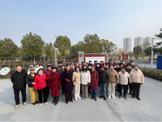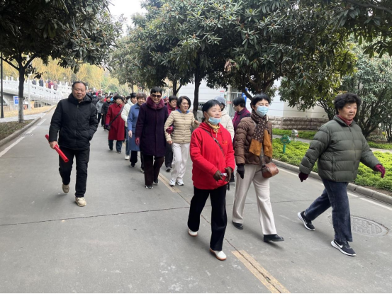 上午9时,退休女教工们在离退休工作处门前樟树林集合出发,沿着香樟路、望月桥、毓秀路、未来大道,有说有笑,大步前行。
